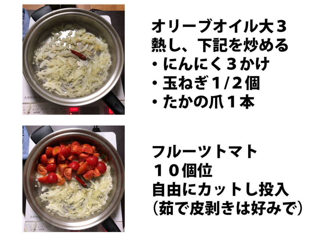 まず、にんにく3かけ、玉ねぎ1/2個、みじん切りにします。