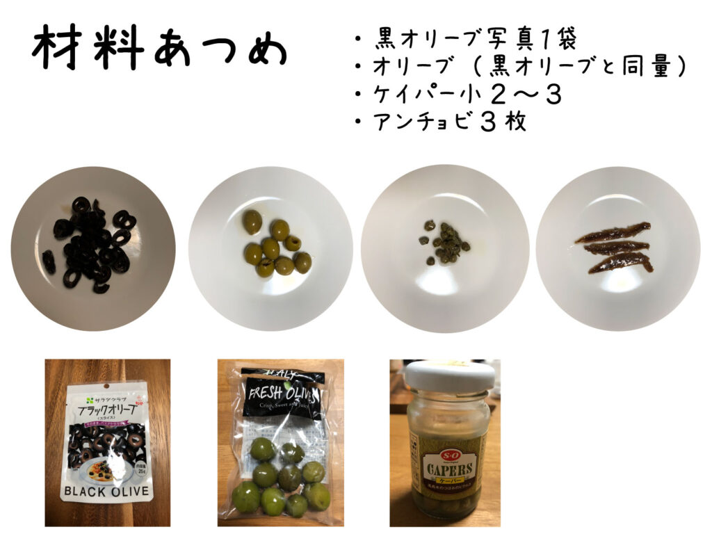 オリーブ(黒オリーブと同量1:1)